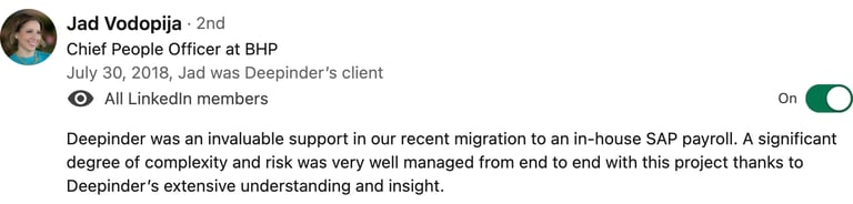 We specialize in HR Transformation governance and placing top-tier professionals in Human Capital Management (HCM), Time, Payroll and Project Management / Delivery domains. Our deep industry knowledge and extensive network enable us to match the right talent with the right opportunities, ensuring our clients build strong, capable teams that drive their business forward.